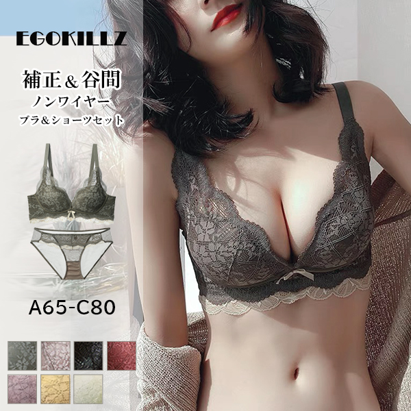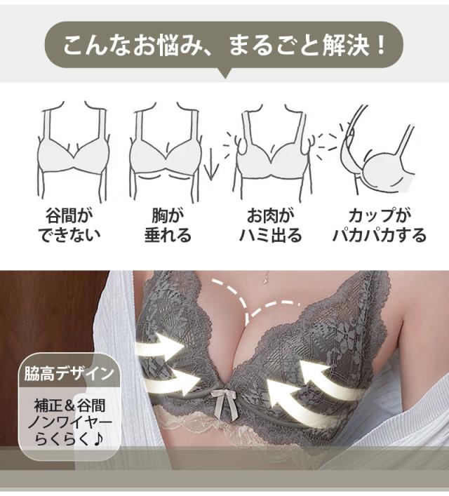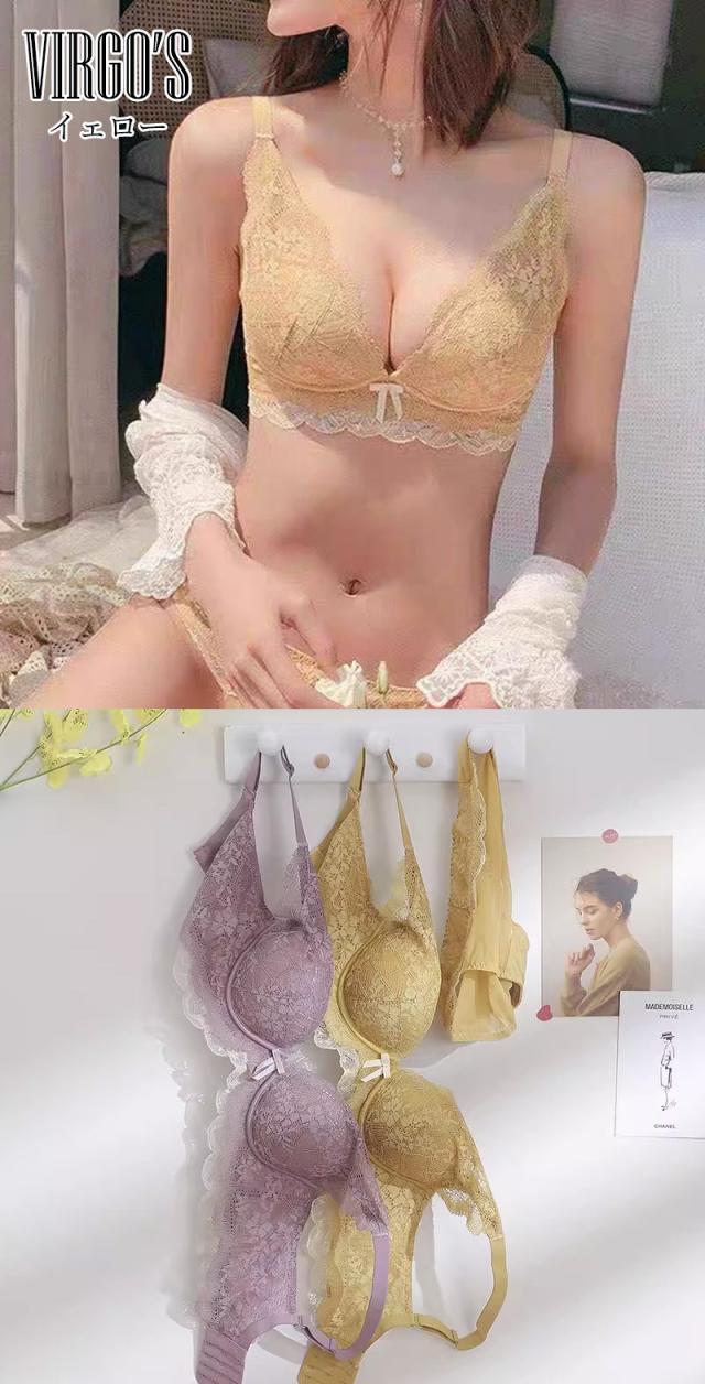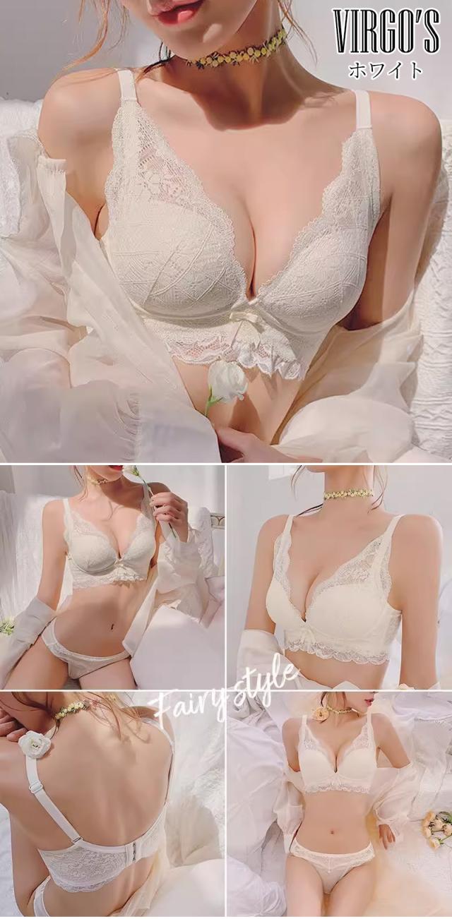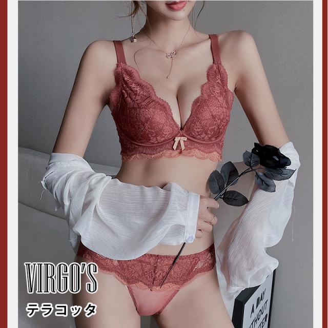 送料無料 VIRGOS 脇高でしっかり補正&谷間! やわらかノンワイヤーブラ 美胸 美背 脇高 フルレース 総レース 谷間 盛れる ノンワイヤー 育乳 ブラジャー ショーツ ブラショーツ ランジェリー インナー 下着セット ブラジャー ショーツ セット 脇肉補正