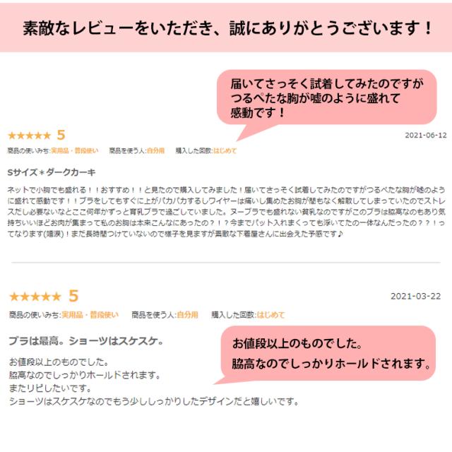 | 商品内容 | ブラジャー、ショーツのセット ≪意匠登録番号≫ 第1790260号 オススメポイント! ・ノンワイヤーで着け心地ラクラク! ・圧倒的な柔らかさ!肌触り極上のやわらか素材を一度体験してみて♪ ・小胸さんも無理せず谷間!小胸さんのお悩み解決します! ・やわらかパッドで圧迫感ナシ!ナイトブラにもOK♪ ・プチプラでお手頃価格!色違いで揃えたくなる☆ ☆スタッフの感想☆ ノンワイヤーでナチュラルな着け心地なのに、自然な谷間ができてうれしい♪ 柔らかくて肌触りの良い生地なので、ナイトブラにしてもいいかもと思いました! カップの浮きなどもなく、毎日着けたい!と思えるブラ♪ |