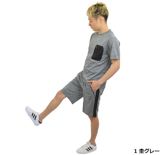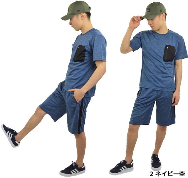上下セットアップ メンズ 冷感 吸汗 速乾 ストレッチ ジャージ上下 ドライ加工 半袖Tシャツ+ハーフパンツ セットアップ 夏用 ジム トレーニングウェア 涼しい ルームウェア 部屋着 運動着 軽量 半袖 Tシャツ ショートパンツ 短パン 春 夏 秋 スポーツウェア アウトドア
