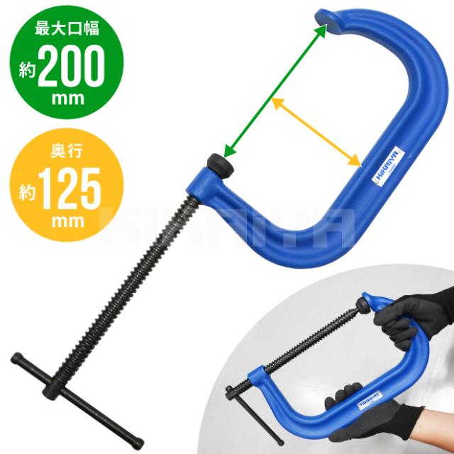 Cクランプ 200mm 2個セット 奥行125mm 強力 固定 締め付け シャコ万力 木工 溶接 穴あけ 接着 KIKAIYA
