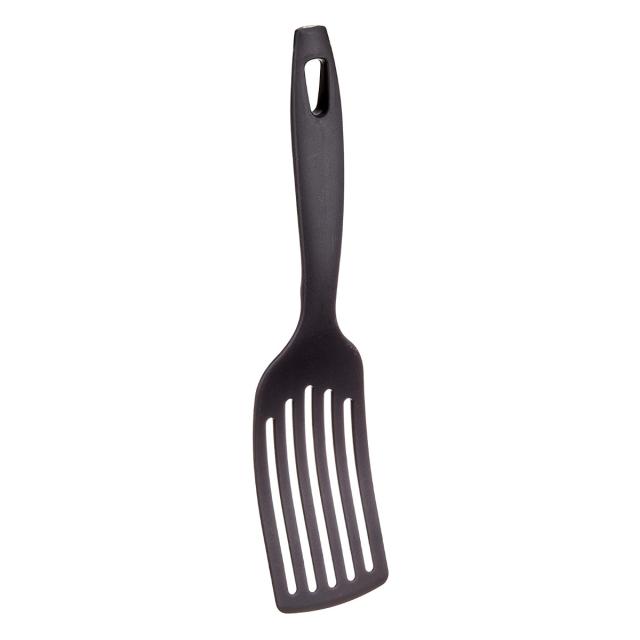フッ素加工のフライパンや鍋をキズつけにくい66ナイロン製のお玉です。穴あきタイプなので煮汁やスープと分けて具材だけすくってお皿に盛り付けることができ、卓上でのお料理の取り分けにも便利に使えます。持ち手にはフック穴が開いているので壁掛け収納も可能です。
