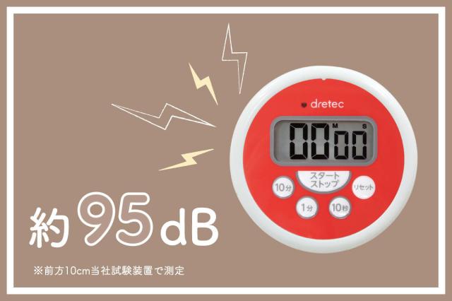 カラオケ音や電車が通る時のガード下の音量に匹敵する、約95dBの大音量でお知らせします。離れた場所や騒がしい厨房の中でも気づきやすいです。