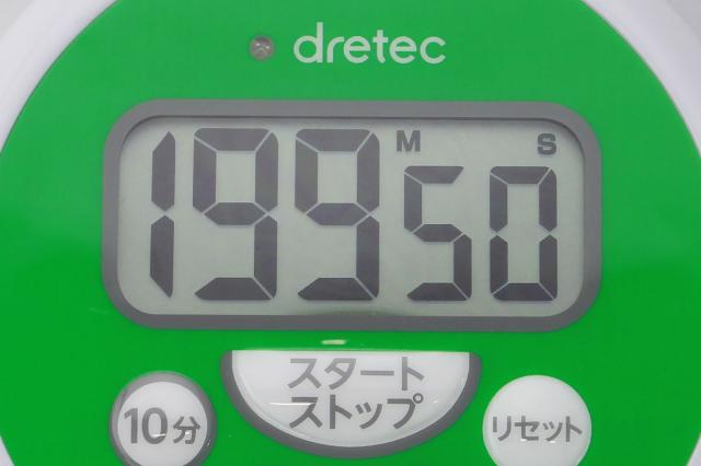 | 備考 | 電源:リチウムボタン電池(CR2032)1個 表示方法:液晶デジタル5桁 最大セット時間:199分50秒 カウントアップ最大表示時間199分59秒 防水仕様:JIS C0920 IPX7 動作温度範囲:0から40度 音量:約95dB |
