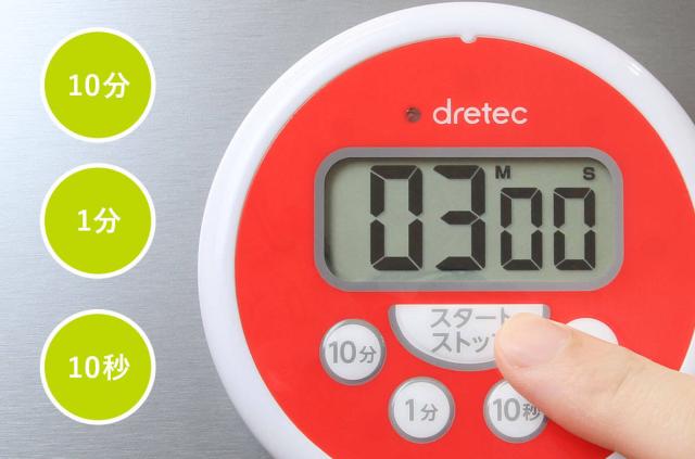 「10分「1分」「10秒」のボタンで計りたい時間に合わせて簡単にセットが出来ます。