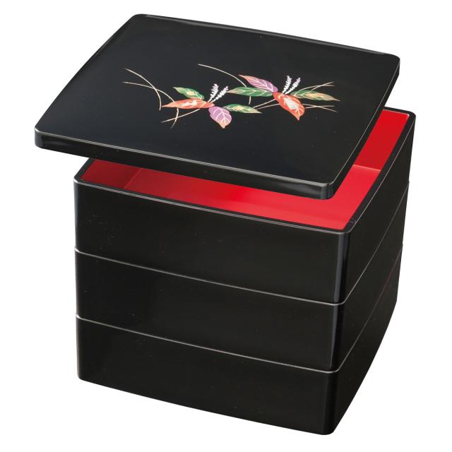 紀州塗り 6.5寸 三段 重箱 黒内朱 二人静 運動会 大型 弁当箱 おしゃれ 3段 お重箱 かわいい おせち 正月 花見 日本製 国産 k_name