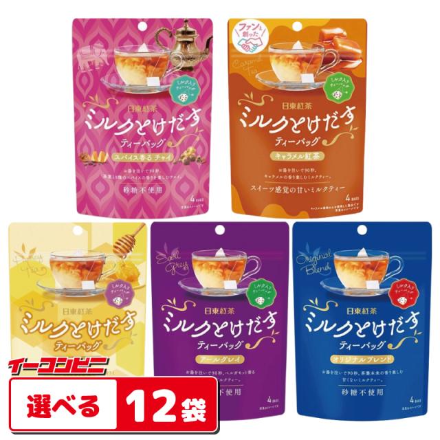 日東紅茶 ミルクとけだすティーバッグ 4杯入 組み合わせ選べる12袋 (合計48杯分)