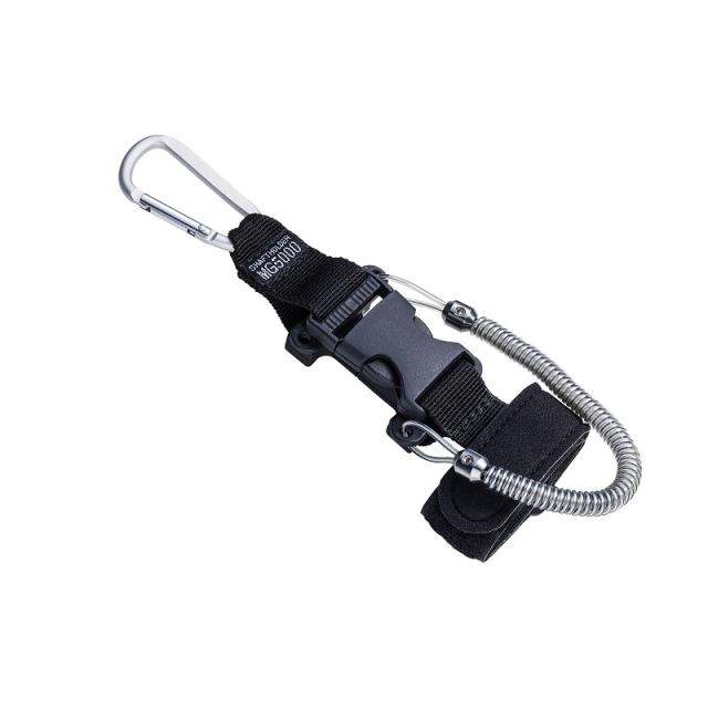 移動時の脱落を防ぐセーフティバックルと、不意な脱落にも回収できるセーフティロープ付。