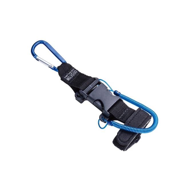 移動時の脱落を防ぐセーフティバックルと、不意な脱落にも回収できるセーフティロープ付。
