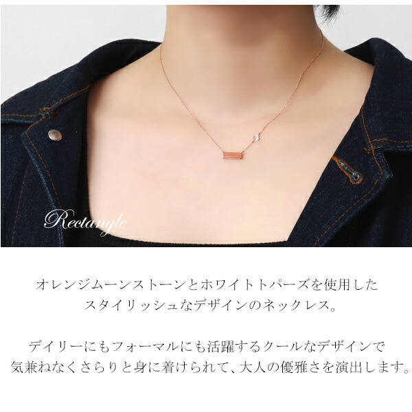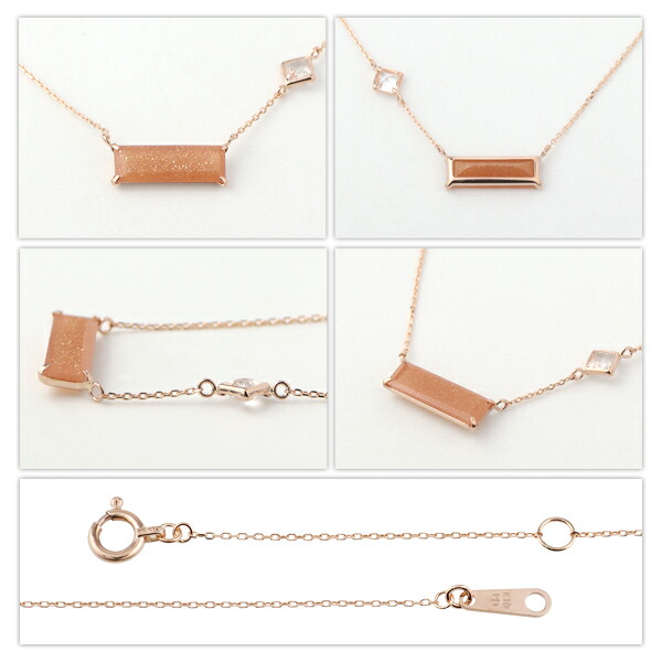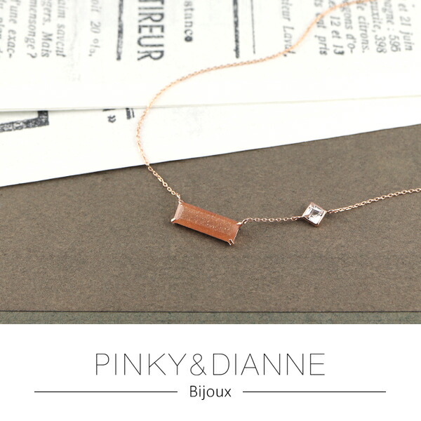 ピンキー&ダイアン バゲットカット オレンジ ムーンストーン ネックレス K10ピンクゴールド 10金 10k 長方形 四角形 6月 誕生石 天然石