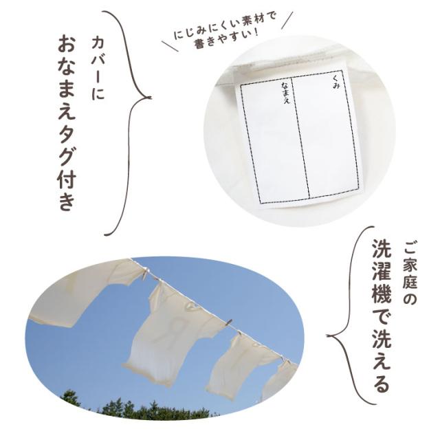 にじみにくい素材を使用したおなまえタグが付いています。