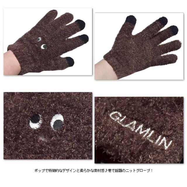 送料無料 スマホ対応 のびのび グローブ 防寒 手袋 メンズ レディース キッズ 子供 かわいい ふわふわ あったか カラー ストレッチ 5本指 NOGLAM ノーグラム GLAMLIN