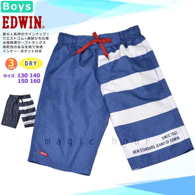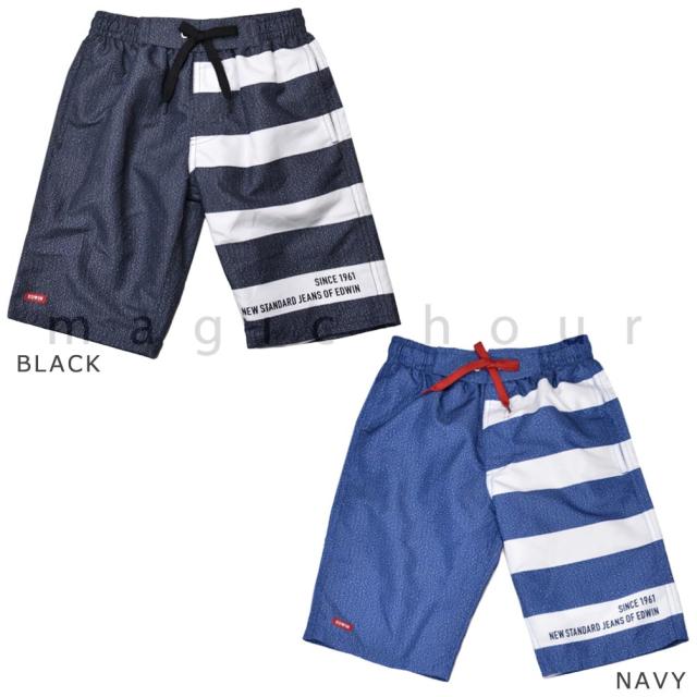 検) EDWIN エドウィン デニム ブルー ブラック ネイビー ボーダー 子供用 こども おとこのこ 海水パンツ サーフショーツ トランクス 水泳 お洒落 かっこいい プール スイミング 海水浴 スイム ウエア 高学年