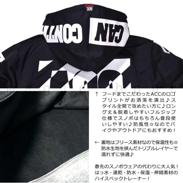スノーボード パーカー スノボー トールパーカー 撥水 ロング丈 フルジップ 防風 ウェア ジャケット メンズ レディース フード付き ACC エーシーシー TALL ZIP