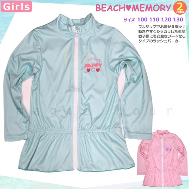 ◆ ラッシュガード キッズ ジュニア ガールズ 長袖 BEACH MEMORY ビーチメモリー UVカット フルジップ ラッシュ UPF50+ ◆