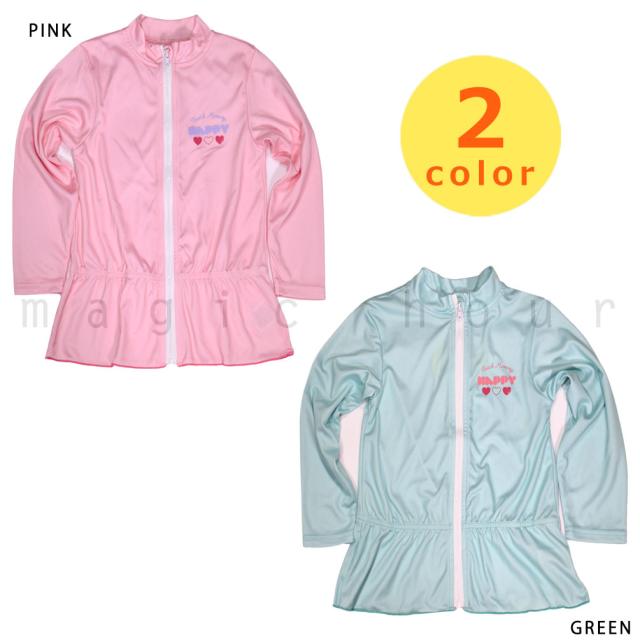 ラッシュガード キッズ 子供 長袖 UVカット 水着 女の子 ガールズ ジュニア ジップアップ パーカー UPF50+ 女の子 女児 ピンク 青 水色 100 110 120 130cm