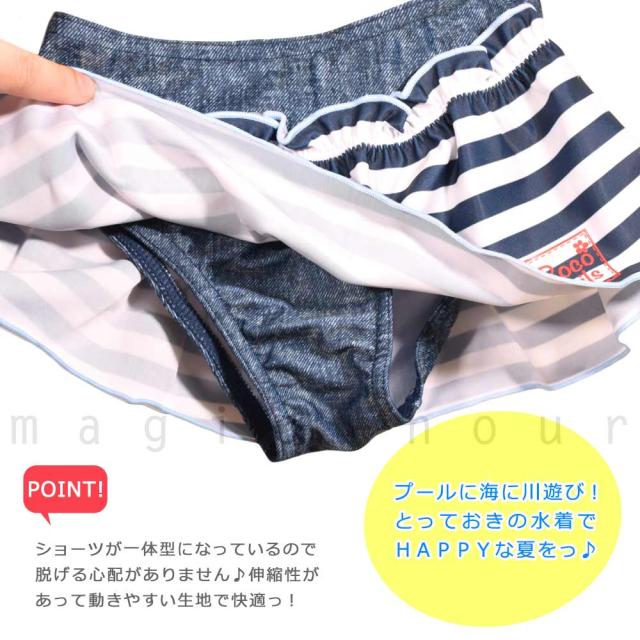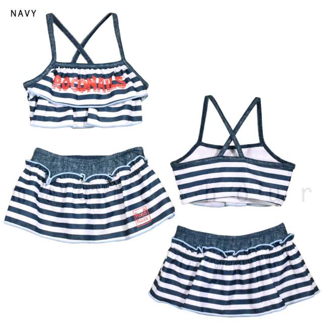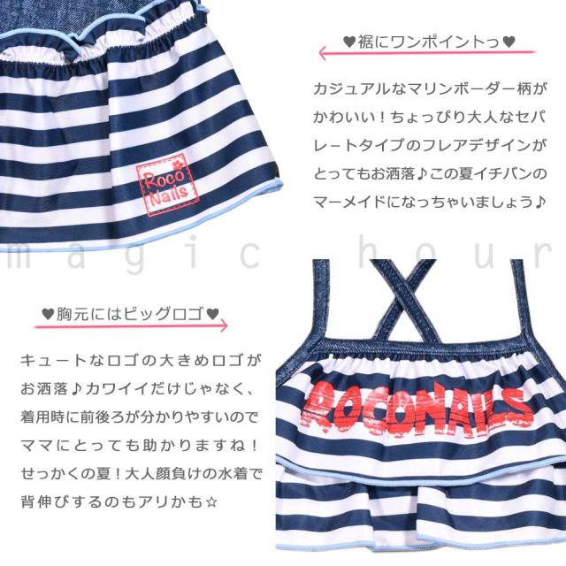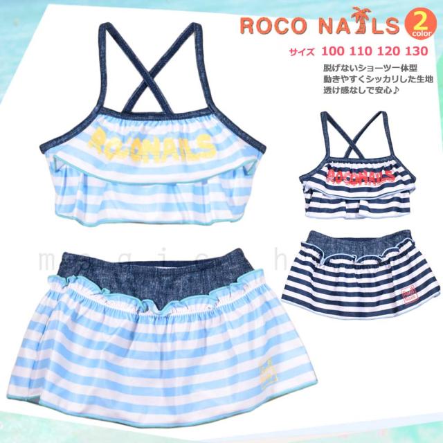 ◆ ROCO NAILS ロコネイル キッズ ジュニア ガールズ セパレート 水着 ボーダー柄 スカート 女の子 女児 スイムウェア ◆