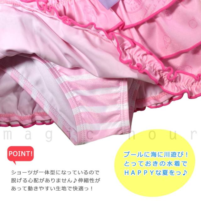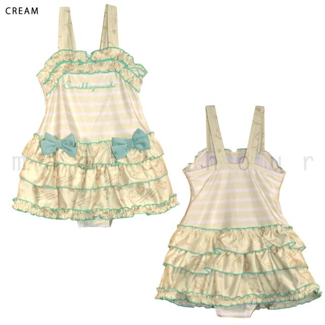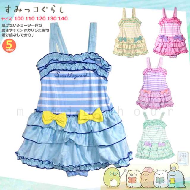 ◆ すみっコぐらし サンリオ キッズ ジュニア ガールズ スカート付き 水着 ボーダー フリル リボン 女の子 女児 スイムウェア◆