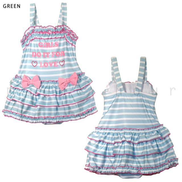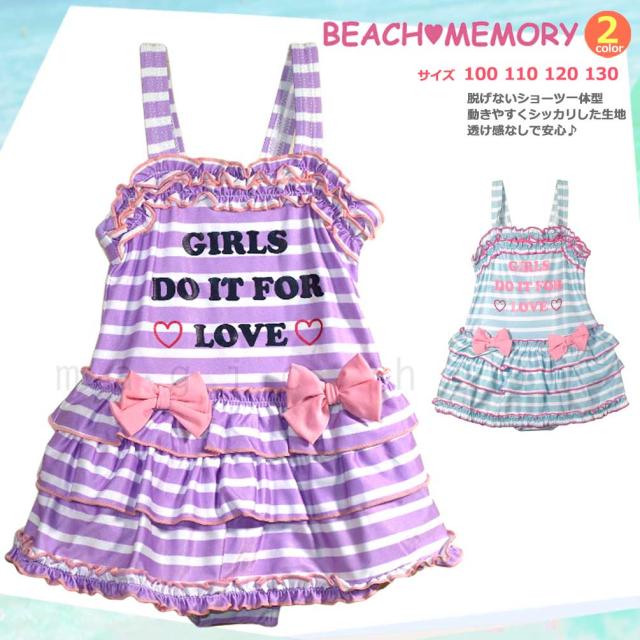 ◆ BEACH MEMORY ビーチメモリー キッズ ジュニア ガールズ スカート付き 水着 ボーダー フリル リボン 女の子 女児 スイムウェア◆