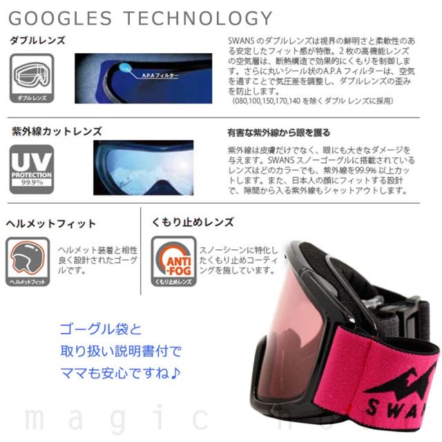 ◆ SWANS スワンズ スキー スノボ キッズ ジュニア スノーゴーグル くもり止め ダブルレンズ 140-DH ◆