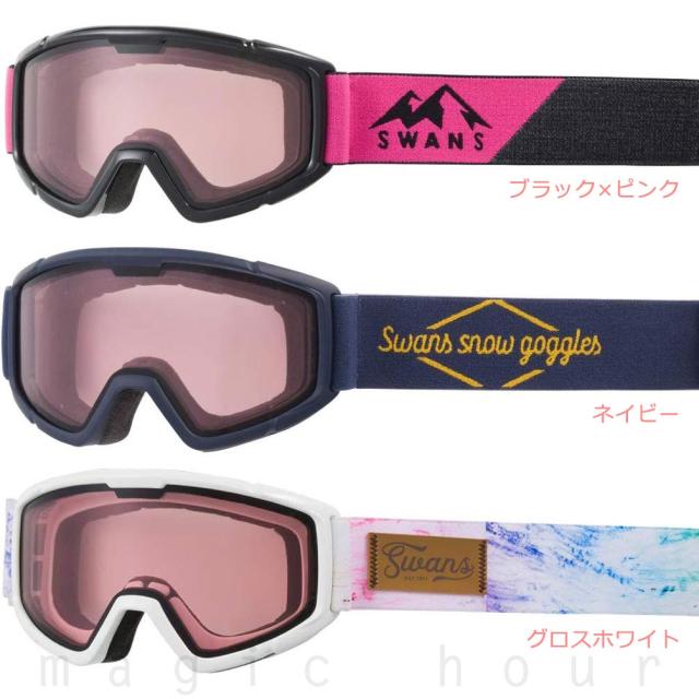 スキーゴーグル 子供 スノー ゴーグル ジュニア SWANS スワンズ こども スノボー くもり止め ダブルレンズ UVカット ヘルメット対応 ボーイズ ガールズ 白 黒 青