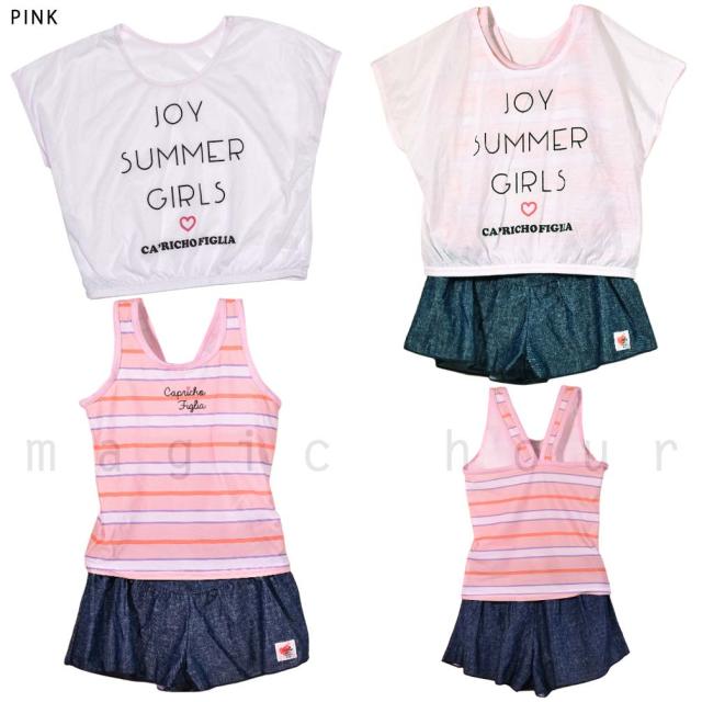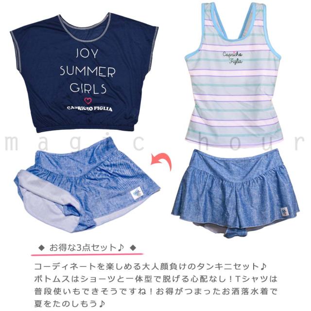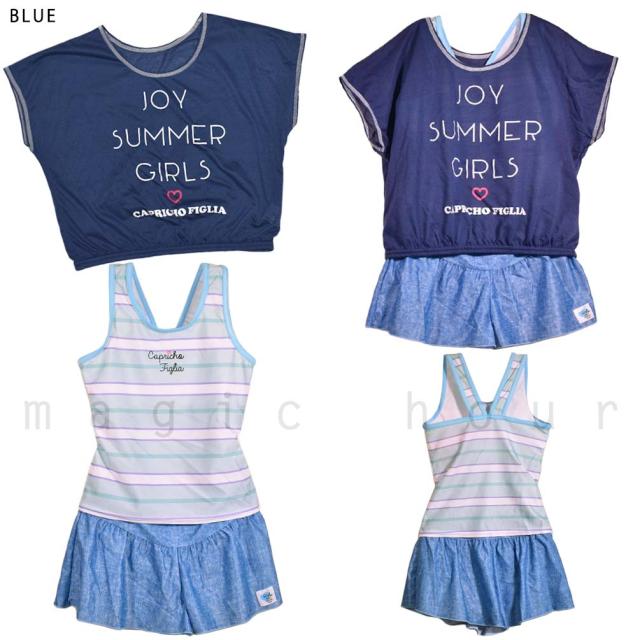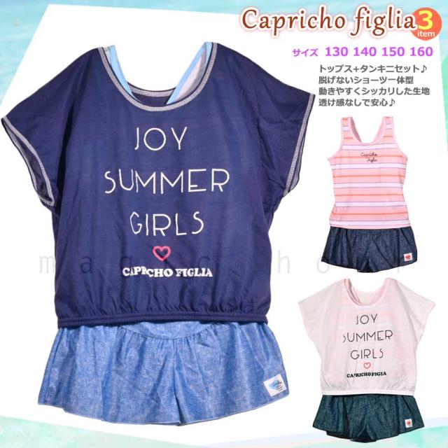 ◆ Capricho figlia キッズ ジュニア ガールズ タンキニ 水着 Tシャツ 3点 セット ボーダー柄 スイムウェア◆