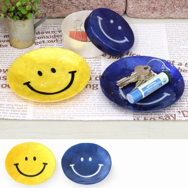 フィリピンの海で取れたカピス貝を加工して作った、可愛いスマイルのマルチトレイ。