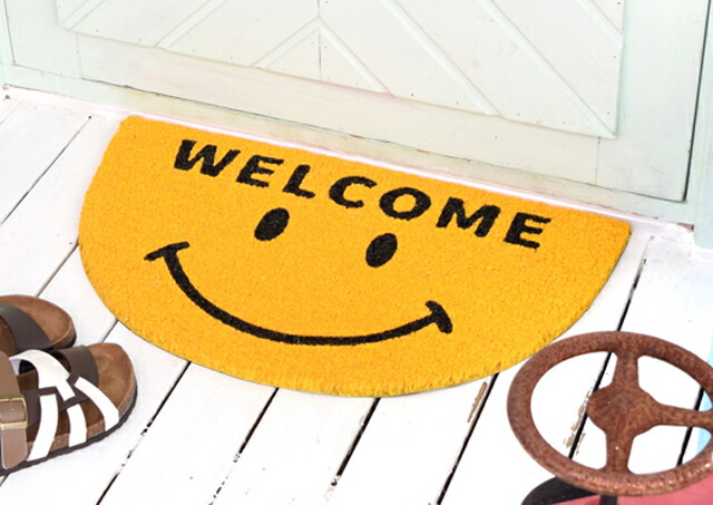 ハワイアン雑貨 インテリア ハワイアン 雑貨 ココナッツ 玄関マット(セミサークルスマイル イエロー) 屋外用 コイヤーマット ハワイアン雑貨 ハワイアン 雑貨 ハワイ お土産 ハワイアン インテリア