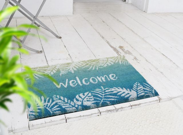 ハワイアン 雑貨 インテリア ココナッツ 玄関マット(リーフ/Welcome) 屋外用 コイヤーマット ハワイアン雑貨 マリン 雑貨 ハワイ サーフ インテリアハワイアン雑貨