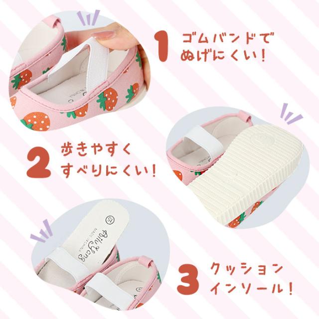 | 商品説明 | ・かわいらしい柄やモチーフが目を引く上履き(13cm〜18cm)が発売。 ・長持ちするのが嬉しい丈夫なキャンバス生地を採用。 ・ゴムバンドが足にフィットし脱げにくくて安心。 ・中敷きはクッション性があり、取り外しできるからお手入もラクチン。 ・アウトソールはかわいらしいキャラクターがデザインされた滑り止め加工仕様。 ・屈曲性に優れたアウトソールが歩きやすく、快適な履き心地。 |