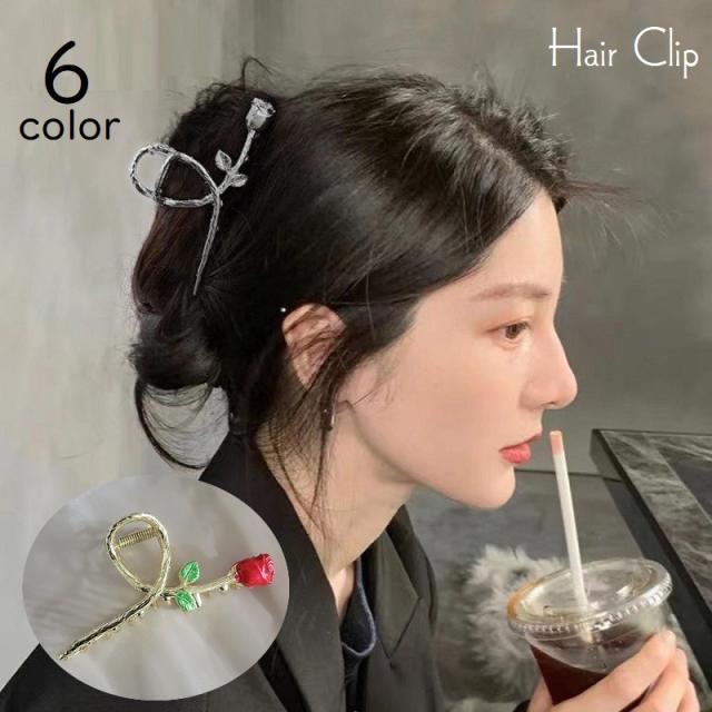 ヘアクリップ バンスクリップ レディース 女性 婦人 ヘアアクセサリー 髪飾り まとめ髪 髪留め バラ ローズ フラワー リーフ