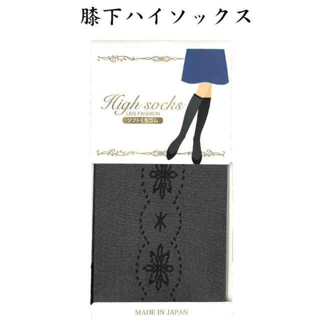 ハイソックス ラインフラワー柄 ブラック 女性用 ひざ下丈 オシャレ ストキング 入園式 入学式