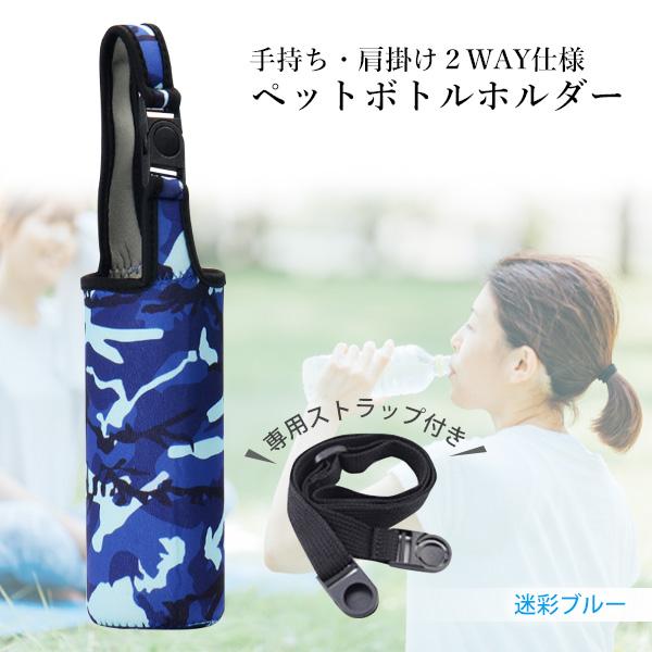 ペットボトルホルダー 迷彩ブルー 水筒カバー 水筒ケース 水筒ホルダー マイボトル ペットボトル (管理S) 送料無料