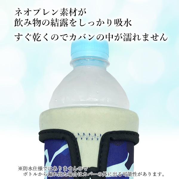 ・ネオプレン素材で冷たい飲み物が結露してもしっかり吸水しすぐ乾くのでカバンの中が濡れません。