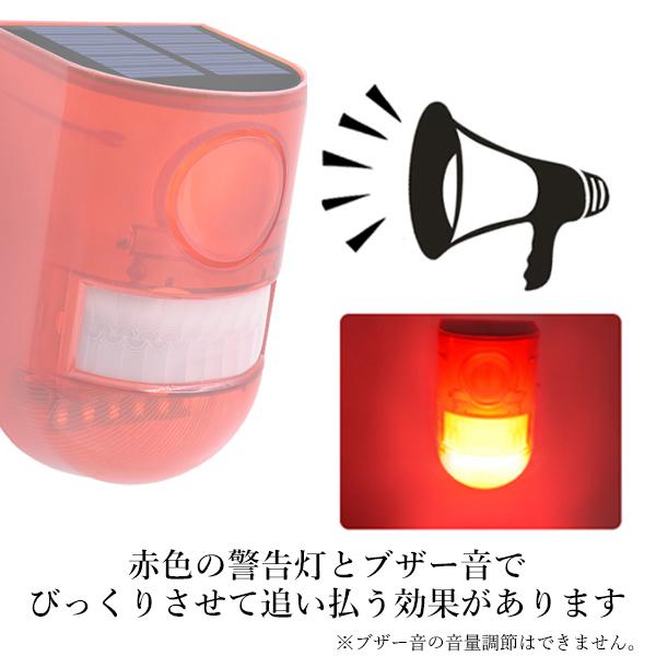 ・赤色の警告灯とブザー音で、びっくりさせて追い払うこともでき、遠くにいても気づくことができます。