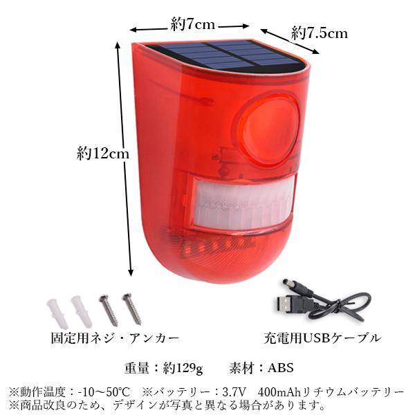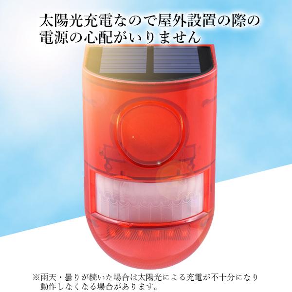 防犯アラーム 警報機 人感センサー LED警告灯 ソーラーライト 太陽光充電 ブザー音 警告アラーム IP65防水 防災用品 (管理S) 送料無料