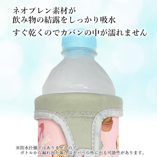 ・ネオプレン素材で冷たい飲み物が結露してもしっかり吸水しすぐ乾くのでカバンの中が濡れません。