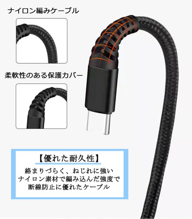 折り曲げても断線しにくいナイロン編み素材のケーブルになりますのでコードも長持ちします。