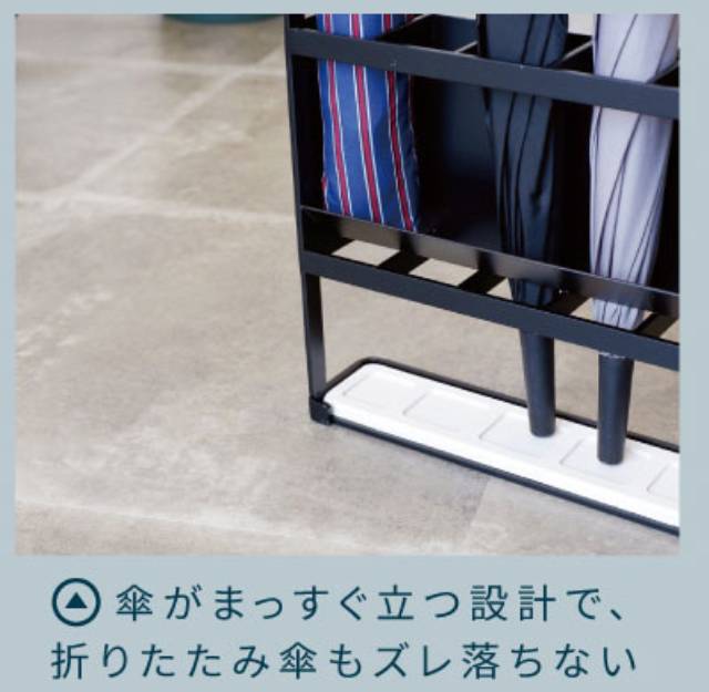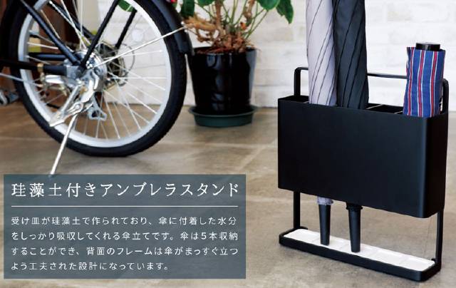 受け皿が珪藻土で作られており、傘に付着した水分をしっかり吸収してくれる傘立てです。