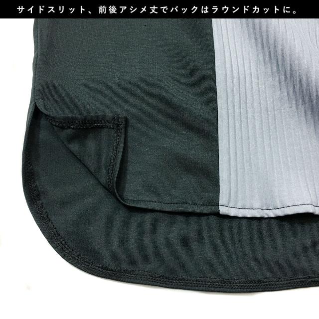 レギュラーカラー/プリーツ切替/無地/サイドスリット/前後アシメ丈/ポンチ素材/