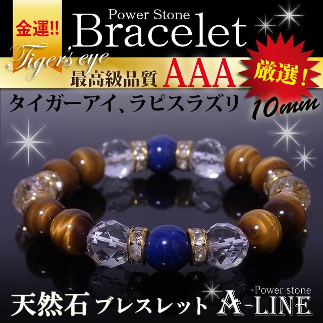 パワーストーン ブレスレット 金運UP AAAラピスラズリ&AAAタイガーアイ10mm PW-3476