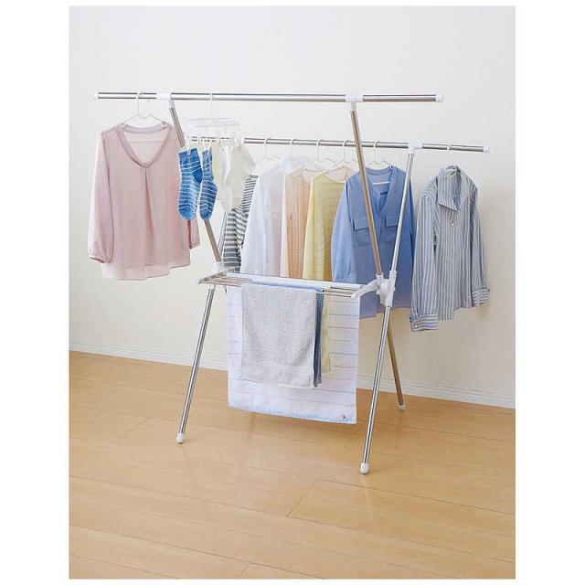 パール金属 タオル掛付室内物干しスタンドX型(伸縮式)