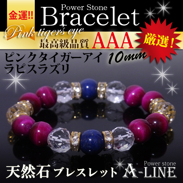 パワーストーン ブレスレット 金運UP AAAラピスラズリ&AAAピンクタイガーアイ10mm PW-3478