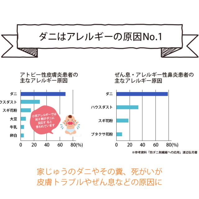 天然アロマの香りで アレル物質の約9割の原因とされるのが「ダニ」。 ※不快害虫ヤケヒョウヒダニ用、第三者機関にて効果測定実施済み。住化テクノサービス株式会社調べ。