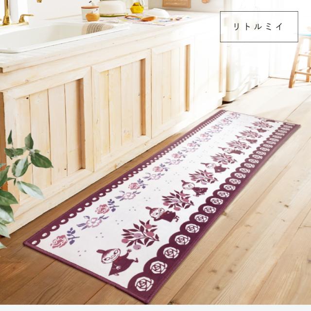 ムーミン谷の仲間たちがキッチンでお出迎え!料理が楽しくなるキッチンマット。キュートなムーミン、リトルミイの2柄から選べるマットです。