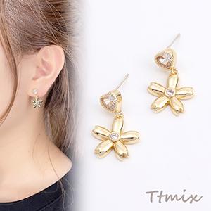 デザインピアス ジルコニアピアス ハート型 フラワー 五弁花 14×22mm ゴールド(1ペア)