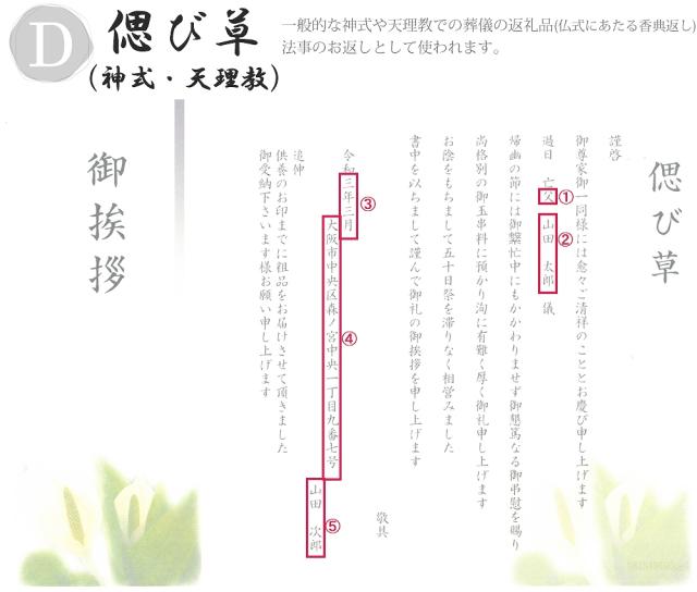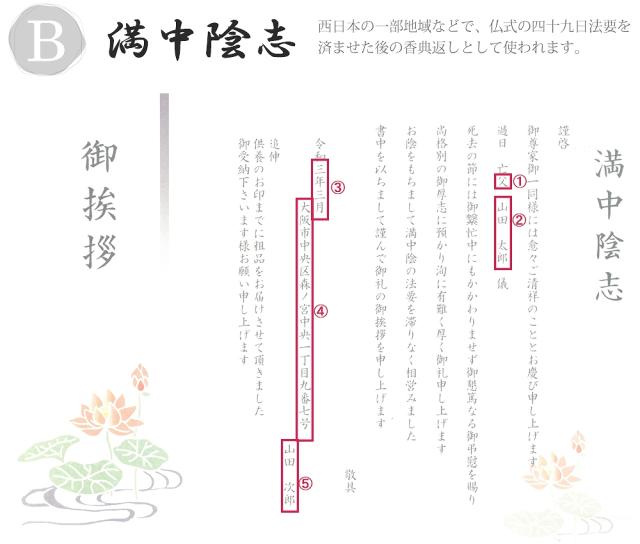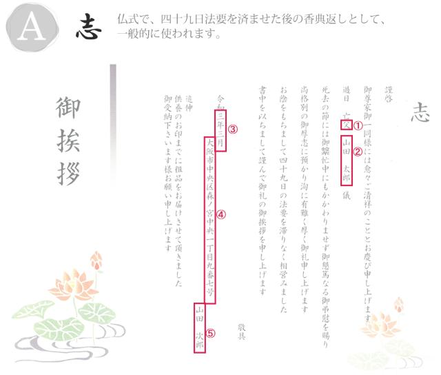 赤枠(1)〜(5)にお入れする内容を当店にお知らせください。