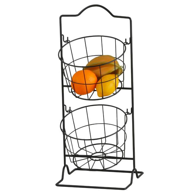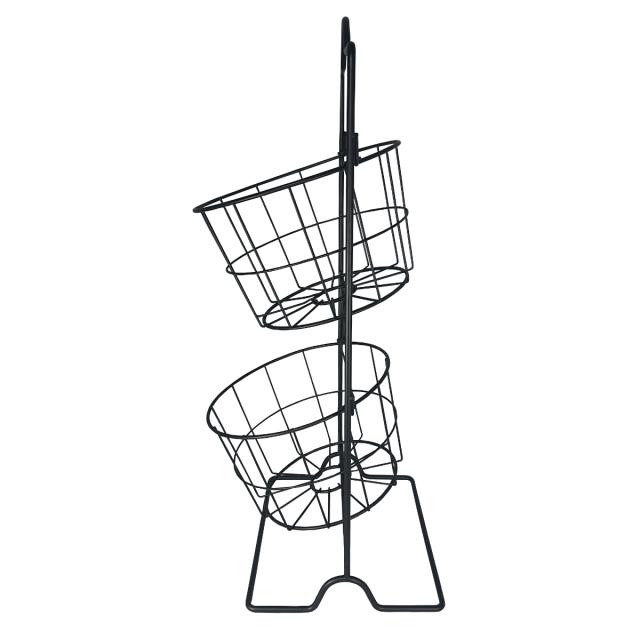 ●アーチ型の取っ手がおしゃれな、アイアン製の2段ラウンドバスケットラックです。