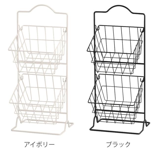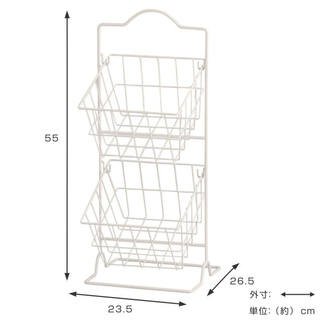 キッチンラック スクエア ラウンドバスケット ( キッチンバスケット キッチンストッカー バスケットラック キッチン 収納 ラック ワイヤーバスケット 2段 アイアン 洗面所収納 キッチン収納 キッチン すきま収納)