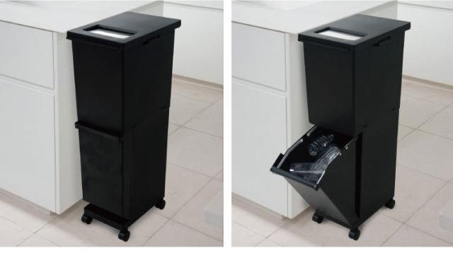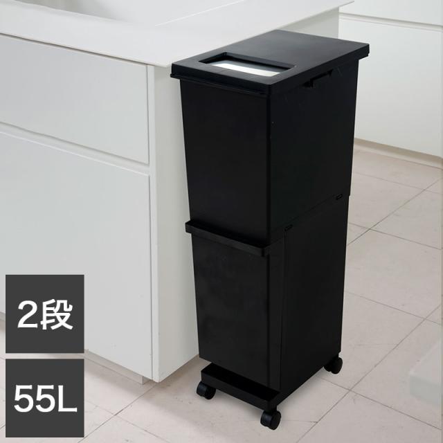 新輝合成株式会社 ユニード 分別スリム2段 55SBK ゴミ箱 コンパクト おしゃれ 55L ブラック(代引不可)【送料無料】