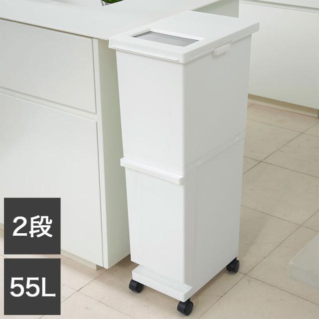 新輝合成株式会社 ユニード 分別スリム2段 55SWH ゴミ箱 コンパクト おしゃれ 55L ホワイト(代引不可)【送料無料】